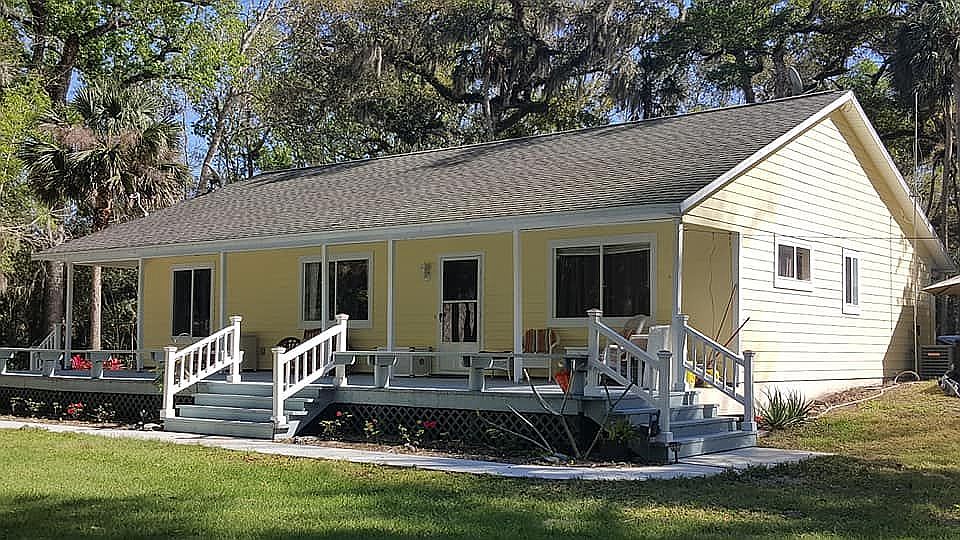 Here is a chance to live in a beautiful Florida Hammock. There are 10 acres of old oaks and other hardwood trees with footpaths cut through to enjoy all nature has to offer. The 3 bedroom, 2 bath home was rebuilt from the slab up in 2004. It has cathedral ceilings, tile and wood laminate floors and hardy board siding. There is an attached 2 car carport and has both porches in the front and back of the house. You will enjoy the large deck from the rear overlooking the park like setting. Also there is a 20X30 foot pole barn and a 10X16 foot shed with electric and a work bench. This is a must see for the person looking to live on a paved road with a lot of privacy.