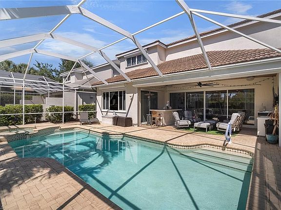 Tucked within the gated enclave of Eden on the Bay, this spacious two-story home offers the perfect blend of privacy, comfort, and proximity to Naples' best attractions. With nearly 3,300 square feet, this 4-bedroom, 3.5-bath residence impresses from the moment you enter, showcasing soaring ceilings and a light-filled open floor plan. The first-floor primary suite features two walk-in closets and an ensuite bath with a soaking tub and tiled shower. Upstairs, a loft and an additional bonus room provide flexible space for a home office, media room, or playroom. Step outside to your private oasis, where preserve views and privacy hedging create a tranquil backdrop for the screened lanai, heated pool, and spa, all perfectly positioned with western rear exposure for stunning sunsets. Perfectly situated in North Naples, Eden on the Bay is a small, gated community of custom homes just off Vanderbilt Drive, a highly desirable location that puts you minutes from the best of Southwest Florida. You'll find Barefoot Beach and Delnor-Wiggins Pass State Park just three miles away, offering white-sand beaches and beautiful Gulf waters. Enjoy easy access to Mercato, Waterside Shops, and a variety of fine dining and entertainment options. With low maintenance fees and exclusive access to the community clubhouse, pool, and spa, this home checks every box for luxurious, easy living near the coast.