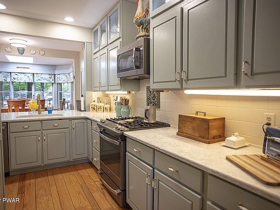 This Elegant Farm-Style HOME, is located on a corner lot in Hemlock Farms, a gated community located in Pike County. The home has been completely remodeled and repainted since 2020. It has a Beautiful wide full front porch as well as a completely screened-in porch. Its unique design makes it one of the most attractive homes in the area. New shingled roof, leaders and gutters w/gutter guards. Propane-fired forced hot air heating system and full house A/C installed in 2020. Kitchen remodeled w/refinished hardwood floor, new quartz counter top, remodeled cabinets,& a coffee bar. New appliances GE Profile gas stove, microwave, dishwasher, refrigerator, as well as Speed-Queen washer & dryer in a separate laundry room w/ utility sink. Both bathrooms remodeled, Generator Hook Up list goes on & on, Beds Description: 2+BED 2nd, Beds Description: 1Bed1st, Baths: 1 Bath Level 1, Baths: 1 Bath Level 2, Eating Area: Dining Area