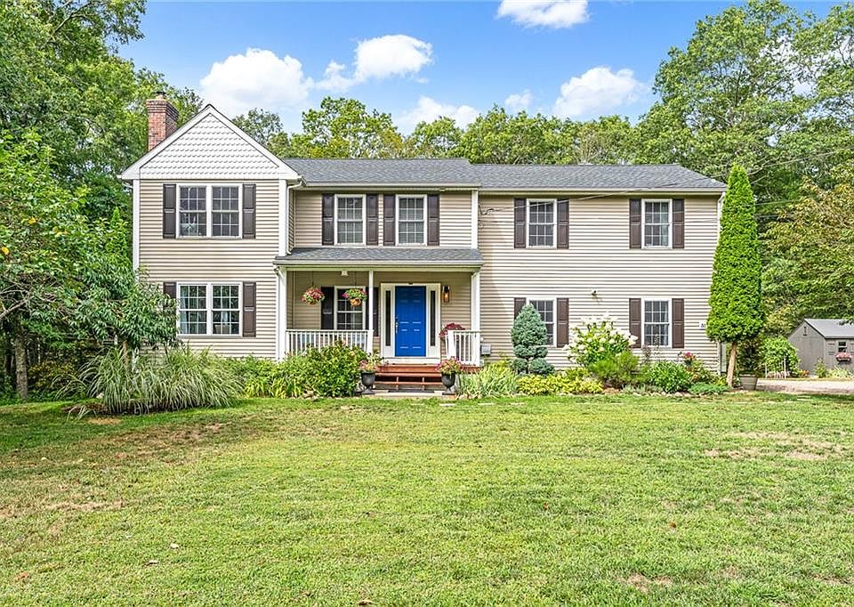 Substantial, charming Colonial on 2.29 acres of country privacy on a quiet tree lined street in the village of Ashaway. The eat-in kitchen flows out onto an elevated, relaxing sundeck overlooking the backyard and wooded land trust acreage beyond. The bathrooms and kitchen are updated. There is a comfortable living room with fireplace, and a generous family room with full bath, wood stove, and luxurious walk-in sauna. There is two zone cental air conditioning. The roof is new as of 2021. The are 3 bedrooms with a bonus space for guests. The walkout lower level includes fully permitted rough-in plumbing and electrical for a full bath and kitchenette to enhance an already capacious, well-maintained home. This delightful listing is ideal for those looking for New England country charm not far from the nicest beaches in the Ocean State.