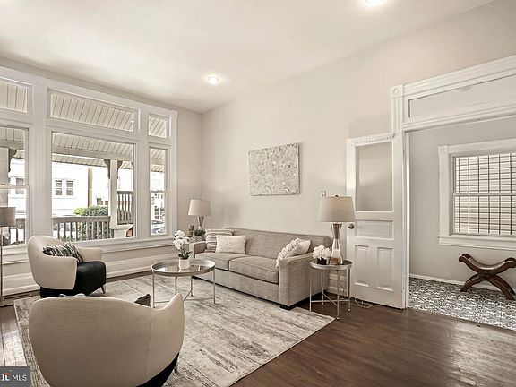 Offer Deadline Tuesday, May 25th, 2:00 PM. Opportunity knocks! Heres yours: own a farmhouse-style detached home, complete with remodeled English basement, two car off-street parking, only 4 blocks to the Rhode Island Metro Station. Enjoy window exposures on four sides and no listening to neighbors through adjoining rowhouse walls. The large welcoming front porch sets the stage for this inviting turn-of-the-century gem. Upon entering, youll find these main level features: an inviting entry hall, generously sized living and dining rooms, both with exposed brick walls, and a modern updated kitchen, all with 10 foot ceilings. (See floor plans) *** The kitchen features expansive contemporary high gloss white cabinets, gas cooktop, stainless appliances (Bosch wall oven & cooktop; Samsung refrigerator), expansive quartz counter-tops and butcher block island with storage, and is a space that truly suits todays chef. Theres also access to the rear deck and yard, perfect for morning coffee, relaxing or entertaining. Walnut-stained hardwood floors (on two levels), an elegant staircase, exposed brick and doorway transoms add character and charm to this vintage 1905 home. *** The second level boasts a large primary bedroom and en-suite bath, two additional bedrooms, a hall bath and bedroom level washer and dryer. The fashionable primary bathroom is outfitted with Grohe fixtures, Edison pendant lighting, a stylish deep soaking tub, dual sinks, and a separate shower with seamless glass surround accented by large matt subway tile. The bright, updated above-grade English basement features full sized windows, living/lounge area, kitchen (with gas cooking), bedroom, full bath and an in-unit LG washer and dryer. With a connecting staircase, this space is also perfect for work-at-home or au-pair uses. There is also easy access to the generous fenced rear yard and two car parking pad. The homes HVAC system was replaced in 2016 and there are leased solar panels on the roof. A future owner may choose to continue leasing them or have them removed by the solar panel vendor at no charge. The current homeowner has found them to be financially beneficial. *** Conveniently located near the Union Market commercial hub and Trader Joes, 317 V Street, NE is situated between the Red Lines Rhode Island and NOMA Metro Stations. Its also a stones throw away from the dynamic new $400M Bryant Street mixed used development near the R.I. Metro. Community amenities include the Brookland and Bloomingdale farmers markets (offering farm to table produce), new city developed playgrounds (2), sport fields, dog park and the Edgewood Recreation Center. The Metropolitan Branch Trail offers biking and jogging opportunities. Shouldnt 317 V Street, NE be your new address to call home?