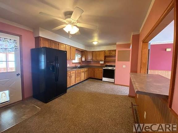 - Appliances/Kitchen Features: Range/Oven, Refrigerator, Cabinets-Wood, Dryer, Washer, Island Counter