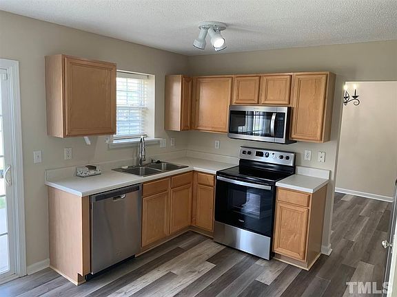 Available Now! Brand new flooring downstairs and carpet upstairs. Fresh paint through out. Beautiful home in great location between Cary & RTP! Cozy living room with gas log fireplace. Kitchen with all new stainless steel appliances and breakfast nook plus formal dining room. All bedrooms upstairs. Fenced back yard for pets and entertaining!