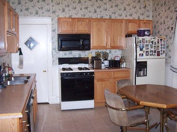 This house can be a DUPLEX or a home for a large family. There are 16 rooms and 2 full baths and two 1/2 baths. Entering the home you will come in through a glass enclosed front porch to the foyer. The living room has paneled walls, carpeting and an antique fireplace. Bedroom has paneled walls and carpeting. Utility room has hook ups for the washer and dryer and a half bath. One full bath on the main floor. Dining room or bedroom has carpeted floors and paneled walls The kitchen has nice oak cabinets and counter top. The dishwasher, range, refrigerator and microwave are included. You can enter the upstiars through a seperate exterior entrance or within the main house. The upstairs living room has berber carpet and painted walltex The kitchen has metal cabinets, green counter top and nice black appliances included There is a half bath in the laundry area Both bedrooms have painted walls and berber carpet The full bath has white fixtures The exterior has a fenced yard and a 2 car garage that measures 22x23 The basement has 4 seperate rooms with plaster block walls. HE GFA and CAC and breakers The roof is 6 years old and there are replacement windows throughout the house Average utilities for both floors is $350. per month. RE Tax is $2217.80 (code240)