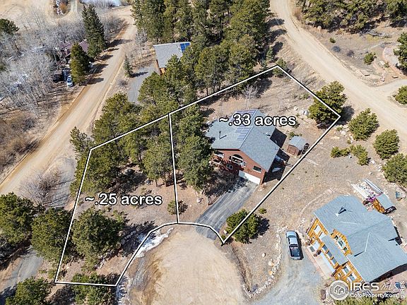 Perched on a sunny hillside near the vibrant mountain town of Nederland, Colorado, this spacious 4-bedroom home sits at the end of a peaceful cul-de-sac, offering privacy, serenity and breathtaking views. Surrounded by flat yard space, graceful aspens and panoramic mountain vistas, the property also features an owned PV solar system that significantly reduces energy costs. Step into a bright, sun-filled interior where oversized windows frame stunning natural views and capture sunlight throughout the day. The upper main level boasts tall, vaulted ceilings and an open-concept design that connects the large kitchen, sunlit dining area and cozy living room anchored by a charming stone fireplace with insert-perfect for warm, inviting gatherings. Also on the main level is a spacious primary suite with a walk-in closet and direct access to the expansive, south-facing composite deck-partially covered to offer shade or shelter during summer rainstorms. A second bedroom and full bath complete this level. Downstairs, the lower level features a generous family room, two additional guest bedrooms, a second full bath and a laundry room. You'll also find access to a private, fenced outdoor space with a custom metal gate crafted by a renowned local artist. Located in a quiet neighborhood just a short walk from downtown Nederland, RTD transit, the Community Center, and the beloved Backdoor Theatre, this property offers convenience, comfort and a strong sense of community. The home includes two separately deeded lots, a 2-car attached garage, and a paved driveway for easy, year-round access.