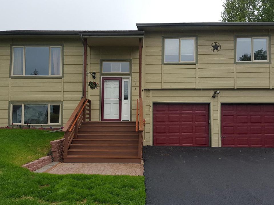 OPEN HOUSE SAT & SUN 12-5PMSpacious, well maintained 4BR, 3BA home close to track and schools. Features include: stainless steal appliances, extra lrg double garage,lrg deck, block patio,southern exposure & vaulted ceilings in kitchen, LR, & dining room. The deck stairs have been rebuilt on front & back. Downstairs has large family room or office.
