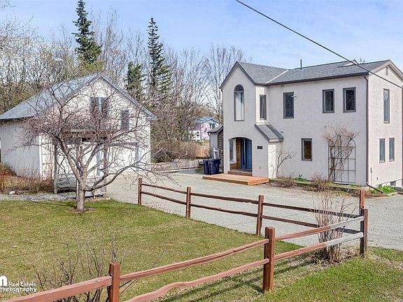 Price Improvement! OPPORTUNITY! Own a one of kind property in beautiful Palmer! With over 6300sf of space (some unfinished) and ready to complete, this home is only limited by your imagination! Sitting on a rare large triple lot with all the Palmer views. Nice sized detached garage features oversized door, tall ceilings, and shop/office space above. Alley access, fenced yard, it's almost perfect!