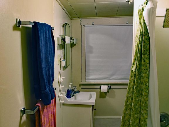 One large living room and one bedroom, decent sized kitchen with appliances, on site laundry, one car garage, off-street parking. It is on the 2nd floor. Water, trash, sewer included. Tenant pays gas and electricity.