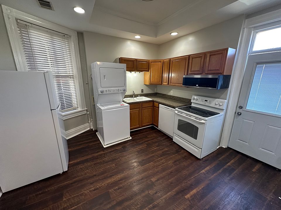 This is a second floor apartment with an off street parking space. This unit is furnished with a washer, dryer, dishwasher, refrigerator, microwave and glass top range. The central heating a cooling with ceiling fans in living and bedroom. This unit is available immediately. Feel free to call, text, or email. Resident responsible for gas and electric. Water trash and sewer included in rent. Must have a 625+ credit score to qualify with no prior evictions and positive rental references. Pets with additional security deposit and pet fee. Water trash and sewer included in rent. Residents responsible for LG&E. Pets accepted with additional refundable deposit and $20/month. There is no smoking inside of the property. There is one off street parking spot for this unit behind the building.