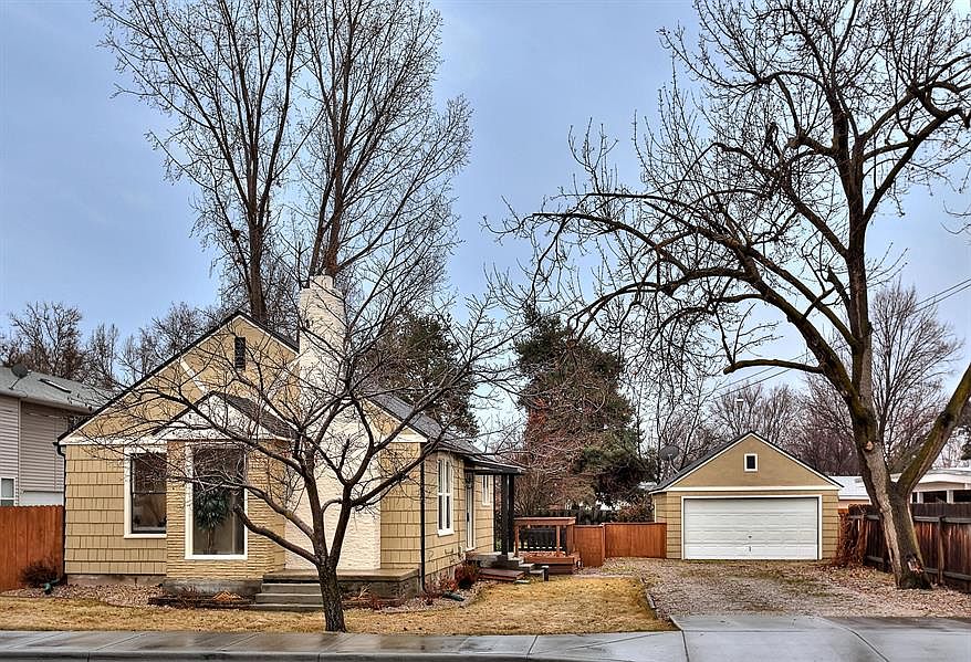 The charm of the North End in Southeast Boise. Built in 1928, this gem was the original farmstead in the area. The adorable home features hardwood floors, brick surround wood burning fireplace, arched doorway, and good natural lighting. Tastefully remodeled bathroom plus a newer bathroom downstairs, updated electrical, and newer roof. Enjoy the unusually large private yard w mature trees and appreciate the oversized two car garage complete w workbench. Basement has previously been used as a bedroom.
