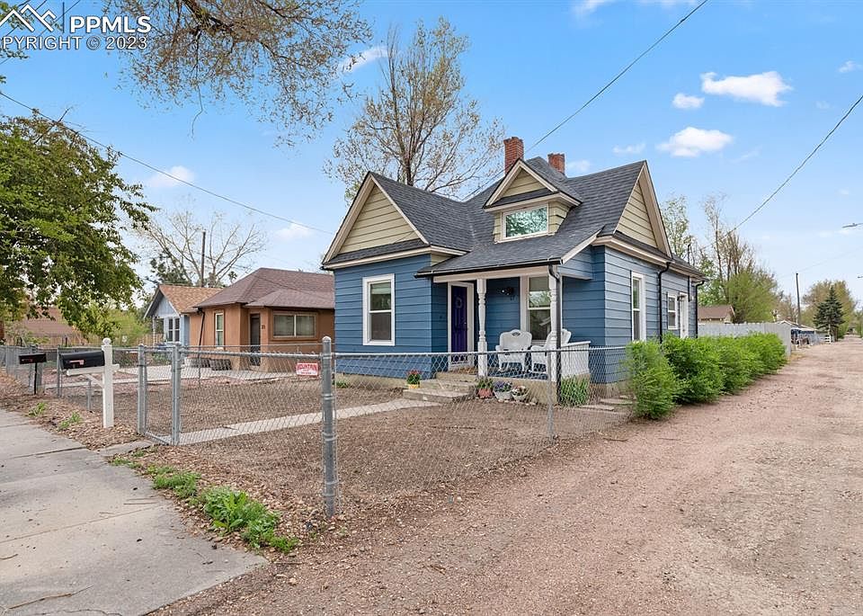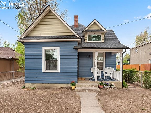 Fall in love with the blue house! Built in 1901, this turn of the century one level home is ready for its new owner! While charming original details like the well crafted trim, ornamented door knobs and backplates, and high ceilings remind us of the Victorian era, thoughtful updates throughout bring in the comfort of the 21st century. The spacious and bright kitchen makes every home chef happy with stainless steel appliances, a 5 burner gas top range, French door fridge, quartz countertops and a deep stainless steel sink while there is enough storage space in the beautiful butler's pantry! The bathroom invites for a spa shower with high quality tiles and a gorgeous granite shower seat. Who would not love to wake up in the primary bedroom looking through French doors into the backyard and onto the mountains on a clear day? The 2nd bedroom and 3rd bedroom or office give enough space for more people or guests! Part of the updates are also brand new vinyl windows in 2022 and a new roof in 2018. A recent structural inspection through an engineer has shown that also the old parts of the home are solid! And best of all: You can walk to downtown Colorado Springs, Monument Valley Park (Pickle Ball!), Colorado College, and more!