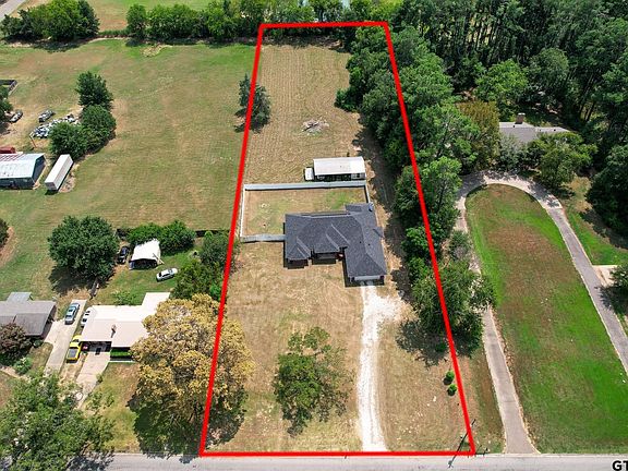 Tucked a short distance from the town center, discover this custom brick home spanning 2371 sq ft on an expansive 1.99-acre estate. This property boasts 4 bedrooms, 3 bathrooms, and a 2-car garage. It offers a harmonious blend of formal living and dining spaces, alongside a cozy family room that features a wood-burning fireplace accented with gas logs. Adjacent to the kitchen, an intimate breakfast nook awaits or you can sit at the breakfast bar. The kitchen has cherry wood cabinets, paired elegantly with granite countertops, a tasteful tile backsplash, and stainless steel appliances. Within this residence's expanse, a generously-sized master bedroom boasts a large sitting area that flows into the Florida Room, complete with a tranquil water feature. The master bathroom exudes elegance, flanked by dual walk-in closets, dual lavatories and a jacuzzi tub. A spacious utility room adds practicality to the layout. The back of the house is adorned with a series of windows, inviting ample natural light to illuminate the space. Beyond the main dwelling, a 12x24 workshop stands alongside a two-car covered parking area, nestled just adjacent to the fenced backyard. The property's advantageous proximity to the school makes it easily reachable on foot, adding to its desirability. Moreover, this home boasts the modern conveniences of solar panels, contributing to its energy efficiency, while the roof, a mere year old, offers reassurance for years to come. These noteworthy features add to the allure of this already exceptional property.