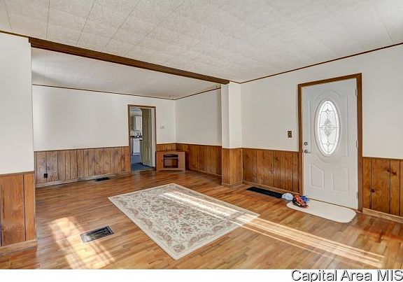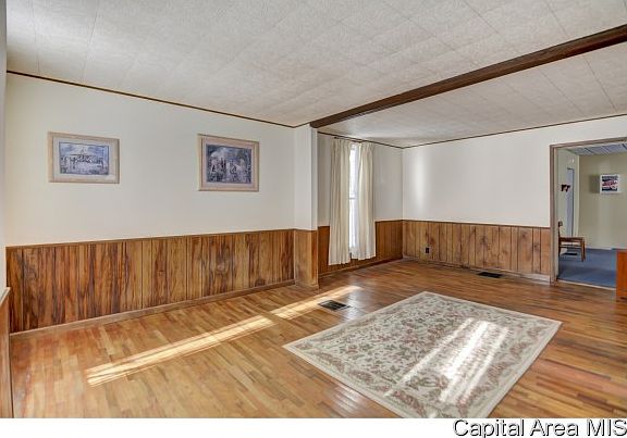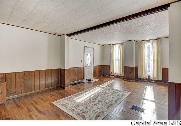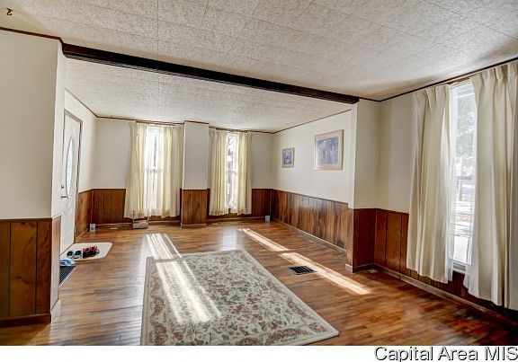 Here is your opportunity to own a large historic home in Taylorville. Hardwood floors in living room and upstairs bedrooms. Beautifully remodeled downstairs bathroom with custom crafted title work in shower and floor. All windows replaced, except bay window in kitchen that still has depression era glass. Wiring and plumbing updated, Carrier furnace, clawfoot tub upstairs, large porch front and back, fenced backyard with storage shed, dishwasher and refrigerator included, laundry on main floor.