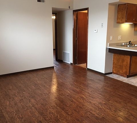 $825 a month, 2 bedroom, 1 bathroom apartment, featuring vinyl hardwood floors throughout, ceiling fans in living room and both bedrooms, large closets, and a breakfast bar. This is an all electric unit with central heat & air conditioning. Location is downtown, behind the Maid-Rite Restaurant, just blocks from the Capitol Building, and has secure entrances, a coin laundry room, and a parking lot. Customer pays the electric bill. Owner provides water/sewer, trash, and maintenance services. Up to 2 cats are okay with monthly pet fee, no dogs please! Non-smoking. 1 year lease minimum.