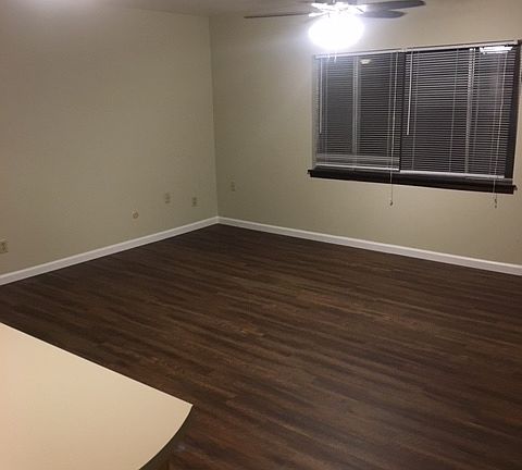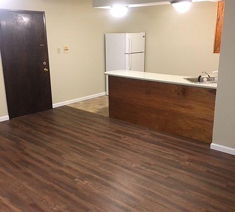 $850 a month, 2 bedroom, 1 bathroom apartment. Features central heat & AC, vinyl hardwood floors, ceiling fans, and a breakfast bar. Living room has a nice view of downtown Springfield. Located in a secure building with parking lot and coin laundry room, directly behind the Made-Rite Restaurant. Customer pays for electric. Owner provides water/sewer, trash, and maintenance services. Up to 2 cats are okay with monthly pet fee, no dogs please! Non-smoking building. 1 year lease minimum.
