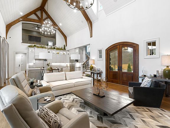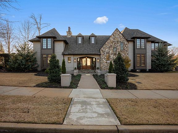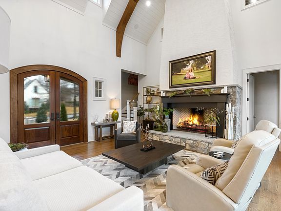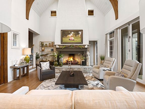 Experience luxury living in this stunning 5,100 sq. ft. contemporary Tudor estate, nestled on two expansive lots. Exquisite exterior finishes of brick, stone, and Hardyboard create timeless curb appeal. Inside, enjoy high-end, resort-style features with top-tier custom finishes throughout. Designed as a 3 or 4-bedroom masterpiece, the open-concept main level centers around the kitchen and great room, featuring soaring 30-ft ceilings with exposed beams and floor-to-ceiling windows flooding the space with natural light. The chef’s kitchen boasts commercial-grade Thermador appliances, quartz countertops, soft-close cabinetry, and a panel-style refrigerator. A raised hearth stone fireplace with gas logs anchors the great room, while retractable folding glass doors seamlessly open to a breathtaking backyard retreat. The main-level primary suite offers a tranquil escape, complete with a bamboo ceiling, electronic blackout curtains, spa-like bath with dual vanities, dual walk-in closets, and a luxury shower with wall and waterfall rainheads. The fourth bedroom, currently a gym and sauna room, includes a full bath and a premium SaunaLogic Infrared Sauna. Two separate staircases lead to the upstairs wings. One side features two spacious bedrooms, each with en-suite baths and large walk-in closets. The other wing offers a massive 40’x17’ game room and an office with French doors overlooking the backyard oasis. Hardwood floors and 10-ft ceilings extend throughout the second level. The home is fully smart-wired with surround sound, remote lighting, and a top-tier security system. A three-car epoxied garage leads to a drop zone, elegant powder bath, and a laundry room complete with a built-in dog bath and Maytag washer/dryer. Step outside into your private resort—a true entertainer’s dream! The covered patio with fireplace and TV flows into the outdoor kitchen, featuring a gas grill, refrigerator, Green Egg, warming drawers, and kegerator. A beach-style saltwater pool with a submerged gas fire pit, cascading hot tub under a tiki hut, and a pergola-covered poolside lounge with a natural gas fire ensemble create an unparalleled outdoor experience. For sports enthusiasts, a 50’x40’ basketball court with a glass backboard awaits. There is also an inground trampoline. This rare estate offers something for everyone and is a once-in-a-lifetime opportunity to own a home with all the bells and whistles. You may never want to leave!