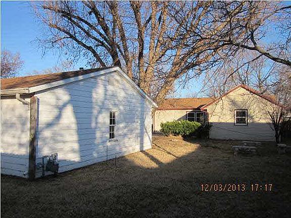 The property offers a ranch style house, living room, kitchen with eating space, two full baths, and three bedrooms. Exterior deck off third bedroom, chain fenced yard, detached garage/workshop. Located in the City of Haysville, close to schools.