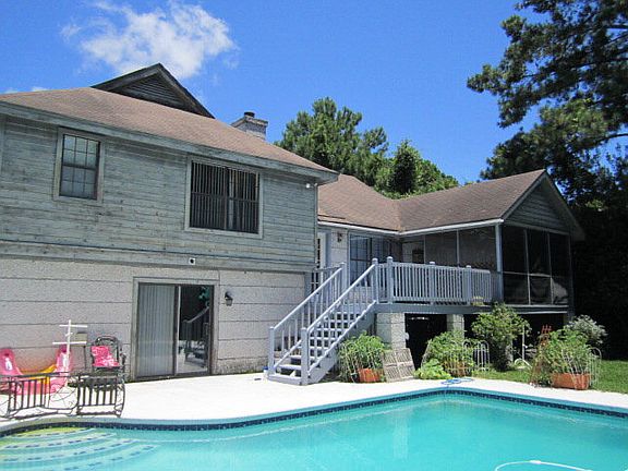Desirable mid-island location in established neighborhood. Open floor plan with large rooms, Large screened porch overlooks pool. Vaulted ceilings in living room, spacious kitchen with pantry and room for breakfast table. Bonus room at the pool level could be used as office,storage or game room. orange tree in back yard. wood burning fireplace, Seller offering $5000 flooring allowance along with home buyers warranty.