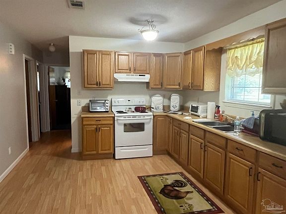 Discover this beautifully maintained brick home nestled in Atmore, AL, perfect for first-time buyers. Set on a generous 0.26+/- acre lot, the shaded, fenced yard is ideal for outdoor gatherings and offers a safe space for children and pets to play. Step inside to an inviting 1,375 sqft open-concept layout featuring 3 comfortable bedrooms and a full bathroom. The living, dining, and kitchen areas flow seamlessly together, making it a great space for entertaining or enjoying family time. The bathroom is equipped with a handicap tub/shower for enhanced accessibility. A thoughtful garage conversion has created a cozy den, adding extra living space to suit your needs. The home also includes a spacious laundry room conveniently located off the kitchen, offering the potential for a versatile mudroom. With a new HVAC system installed in 2021 and city utilities, this home is move-in ready and full of charm. Located in the heart of a welcoming community, you'll have easy access to local amenities and attractions. Don't miss out—schedule your viewing today! Buyer to verify all information during due diligence.