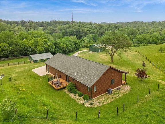 Rolling Hills provide peaceful setting on 9 ac m/l only 25 min to WDM & Jordan Creek. 3BR Ranch w/space U need inside (2900+ tot sf fin) & space U want outside! Cov deck w/rm to sit & enjoy coffee leads to entry. Note: Beautiful hickory flrs & vaulted ceiling in open Fam Rm & Kitchen w/granite, pantry & doors to deck. Primary BR, large BA suite w/double vanity, natural light, XL tub, shower & WIC. 2nd BR (currently office) and 3/4 BA nearby for guests. 1st flr lndry/mud area w/pocket dr nr roomy & heated 24x28 gar w/paved drive. LL with possibilities! Living area (new carpet 2023), tile, 3rd BR w/egress & 3rd BA + storage. 30x40 "Sheep" bldg w/auto heated waterer, elect & overhead 7x9 dr. 3 paddocks 7 ac m/l fenced, 30x40 bldg (2017) w/concrete flr, 14' h door & 16' ceiling (RV) + 1 ac timber w/walking path & dry creek 2 enjoy. Home Remodel 2015. No covenants. All electric home = $169/mo ave MidAmerican. Warren Water, Century Link internet. Everything U want is here!