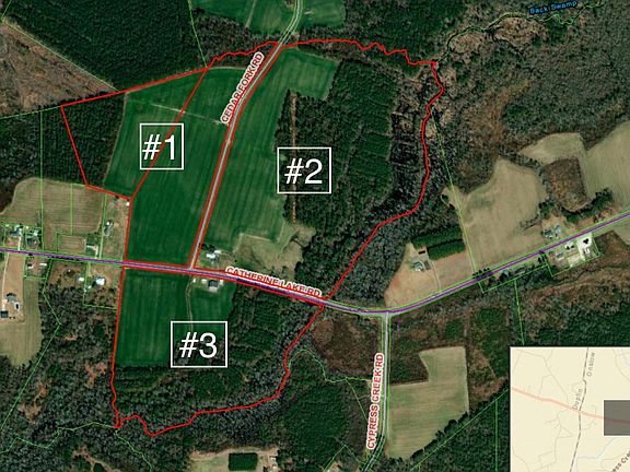(#2 of 3)Prime location between Jacksonville and Richlands. This 80 acre property has endless opportunities and potential. With road frontage on Catherine Lake Rd and Cedar Fork Rd. Located 3.5 miles from Albert J. Ellis Airport and 15 miles from Jacksonville city limits. Less than 17 miles from New River Air Station. From developing, to farming, to your own personal oasis don't pass on this opportunity. A three bedroom, 2 bathroom house and a sizable detached garage conveys with the land. (This is #2 of 3 from the same parcels #011683)