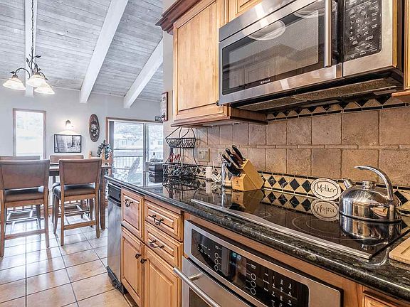 This is the one you have been waiting for! Remodeled, south facing view unit. Slab granite counter tops, Jenn-Air stainless steel appliances, heated flooring, spa tub in master bathroom, pull down ladder for access to attic storage, raised panel wood doors, private garage, large south facing deck, vaulted open beam ceilings... too may upgrades to list. Centrally located with easy access to the Town shuttles, shopping and restaurants. Never rented by current owners. Sold furnished subject to an inventory. This one is ready to go!