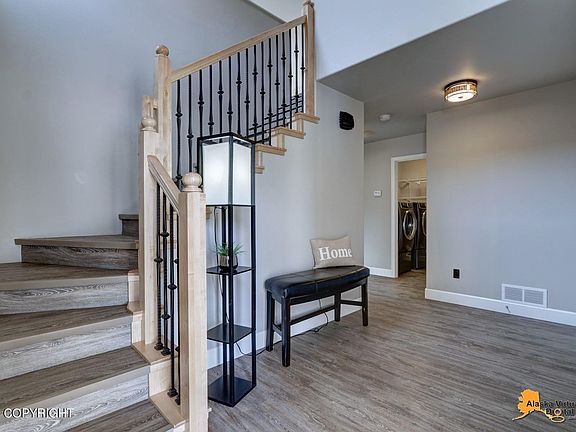 Beautiful home with Mountain Views. Great location close to UAA, Hospitals, trails and shopping. Top of the line upgrades throughout. Lineal Fireplace, laminate flooring, Iron rod railing, stainless appliances, tiled bathroom showers and more. Enjoy sitting on the back deck enjoying the view. Master with spacious WIC. 2 bedrooms up, 2 bedrooms down.