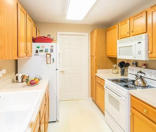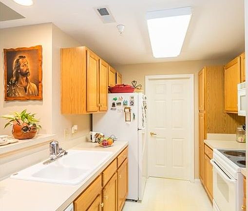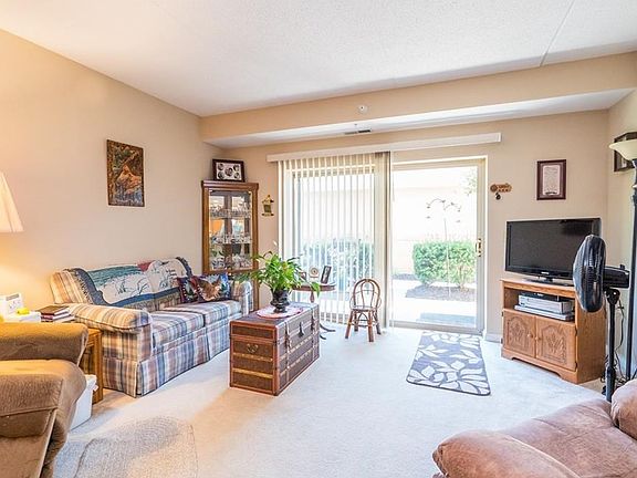 Enjoy the security and peaceful atmosphere in this newer ground floor condo. This is a 55 and older community complex. With 2 large common areas including a library, you will have multiple places to enjoy. Your condo has been freshly painted throughout. The pleasing neutral tones are sure to compliment your furniture and decorating style. Your condo is bright and clean throughout. With a large galley kitchen, you will have plenty of cabinet space as well as counter space for meal prep and utensil storage. Your utility room is located through the door by the kitchen. With 2 bedrooms and 2 bathrooms, there is plenty of space for everyone! Enjoy the large sliding glass door that leads to your covered patio. You can relax in the shade while enjoying the weather. You have more storage with your 1 car detached garage located behind the building. Donât delay, schedule your private showing today!