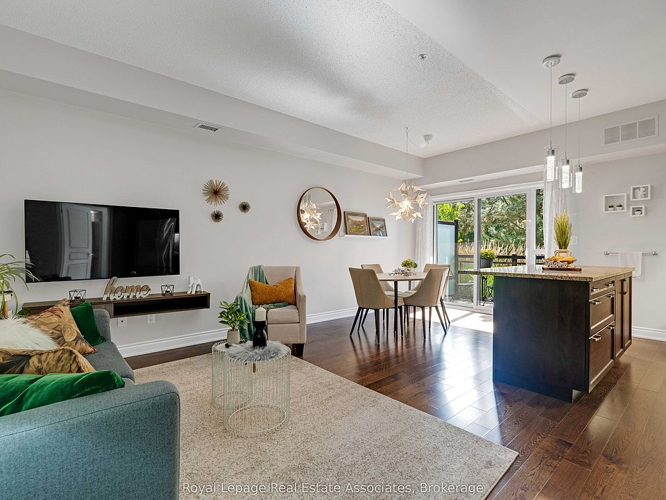 This is Windows on the Green! A bright and spacious 2-bedroom, 2 full bathroom suite that backs onto the Glen Erin Trail for rare privacy and tranquility. This desirable main-floor suite is not your typical condo layout, features large windows, 9-foot ceilings, and a dining area walk-out to a private terrace with a gas BBQ hookup. The primary retreat comfortably fits a king-size bed and offers a private ensuite. Enjoy 2 side-by-side parking spaces, 2 lockers (1 standard + 1 executive), and convenient bike storage, perfect for exploring the endless nearby trails, parks, or walking your dog right from your doorstep. Located in the community of Erin Mills, steps to shopping, UTM, close to Credit Valley Hospital, GO Transit, and major highways. Resort-style amenities include underground visitor parking, a south-facing rooftop terrace, party room with bar & fireplace, a welcoming main floor lounge with flat screen TV, and a fully equipped exercise room. Just waiting for you!!!