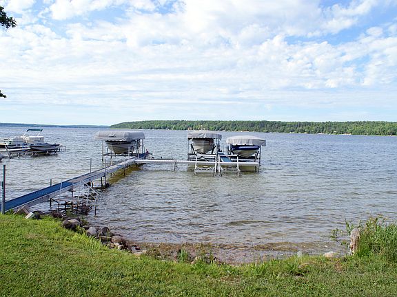 This property has so much to offer with ownership on Mullett Lake. The house is well maintained and has a private setting and including the deeded ownership on Mullett Lake to dock your boat all summer long, this property is very unique. The access is only a few hundred feet away and a very short golf cart ride away. Located at the end of the Cul-de-sac with next to no traffic it is very quiet. The home has nice cathedral ceilings, main floor bedroom, two car attached garage. This is a great way to get your Mullett Lake cottage or home with tons of privacy and a place to dock your boat for the summer.