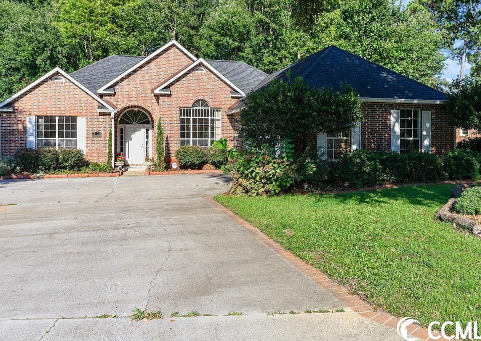 When driving into River Hills Golf community you'll be struck by the surrounding beauty. Every house is architected differently with manicured gardens and rolling hills of the golf course and stands of trees. 6 minutes to waterfront dining and 14 minutes to Cherry Grove pier and beach. Solar panels will save you thousands. The well fed irrigation system also saves hundreds in water bills if you like green lawns and gardening. This all-brick home has abundant light through large windows looking into vaulted ceilings, granite countertops, hardwood floors and stainless steel appliances, freshly painted, ceiling fans throughout. Love relaxing in the quietness of the Carolina room, with only the sounds of the woods that shade the backyard. (146 square feet not included in the 1780 footage because it has no HVAC but stays within five of degrees of the living room if the door is open.) The Carolina room looks onto a lush back yard with a perimeter of elephant ears and other decretive plantings that form the perimeter to the woods that shield the back of the property.
