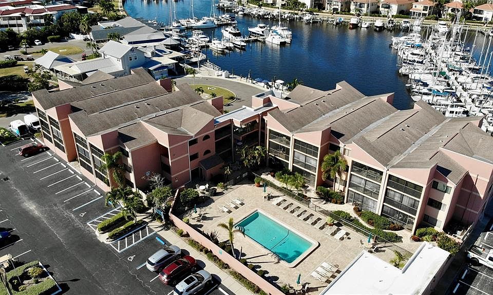 Welcome to this beautifully maintained first-floor condo in the highly desirable Keel Club at Burnt Store Marina. This fully furnished, turn-key residence is ready for immediate occupancy or rental use and is ideally located just steps from the waterfront restaurant, marina office, The Trading Post deli, and the heated community pool. This unit had no flood damage from any hurricanes, offering added peace of mind. Inside, the condo features a bright and updated living area, a spacious bedroom with a king-size bed and newer Berber carpet, and an enclosed lanai with solar-tinted vinyl panels and screens for year-round enjoyment. A large utility closet houses the in-unit washer and dryer. The kitchen includes stainless steel appliances, and recent improvements include a 2022 water heater and a new A/C motor installed in 2025 (serviced twice a year). Residents enjoy close proximity to the marina’s scenic waterfront views, a relaxing observation deck, and abundant wildlife, including frequent dolphin sightings. Burnt Store Marina offers optional memberships for golf, fitness, tennis, pickleball, bocce, social activities, boating, and more. Perfect for a coastal getaway or investment property, this turn-key condo delivers comfort, convenience, and an unbeatable marina-side location.