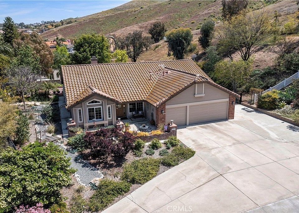 LA SIERRA SOUTH- Elevated on a secluded hillside shelf is this extremely artistic single level residence offering panoramic views of the city lights hills and mountains surrounding! Currently configured as a 3 bedroom with a large open study but easily modified into a 4 bedroom home, this open concept plan conforms nicely to intimate family living or large gathering entertainment. Large formal living room; Separate formal dining room; Beautifully remodeled kitchen open to the large family room with fireplace and soaring vaulted ceilings. Private master suite with remodeled bathroom and direct access to the backyard; generous secondary bedrooms; indoor laundry room; Attached three car garage plus an additional detached over-sized single-car garage ideal as a workshop or with modest conversion and detached office space. Beautifully landscaped grounds with custom koi pond, covered and uncovered patios surrounding the property and mature water-conserving landscaping all around. Private driveway leads to this welcoming resort of a residence offering ample off-street parking for residents and guests.