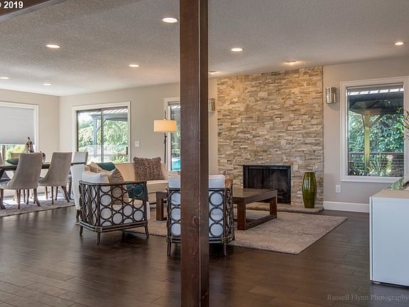 This lovely home has been stunningly remodeled! New cabinets, flooring, carpeting, floor-to-ceiling rock fireplace and updated bathrooms. Sparkly white quartz counters & expansive island for entertaining/eating area. Unique family room w/vaulted cedar ceilings, woodstove & many windows to enjoy territorial view. Enjoy the large deck with two upscale patio gazebos, fireplace and landscaped private backyard. Deep oversized garage.