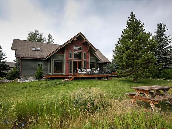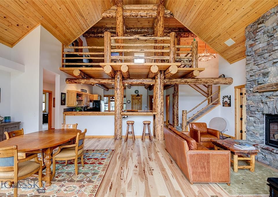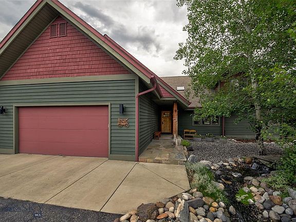 WOW! This is it, an absolutely "perfect" Big Sky Meadow Village home. Located ON the 16th fairway of Big Sky Golf Course. One-of-a-kind Mountain home by renowned Architect Jerry Locati. One-floor living centered around the Great Room and Loft; 2,800 SF, 4 spacious bedrooms, 3 full bathrooms. Charming waterfall & pond at entrance. Spectacular artistic hand-peeled log beams & accents. New, Alpine grade solid Hickory floors. Custom Scott Koelzer fireplace. Stylish kitchen with dinette nook. Direct jaw-dropping views of the Spanish Peaks Mountains from every room & your 2,000+/- SF deck w Hot Tub. Put on your X-country skis and ski right onto the groomed X-country trail system. Two car garage leads to mudroom/laundry. A quiet neighborhood, easy walk to Town Center restaurants, summer concerts, farmers market, shopping, free skier shuttle. New high efficiency on-demand HWH. Forced-air Propane heat (1,000 Gal in-ground tank) Large Spruce trees and beautiful mature landscaping. Agent owned.