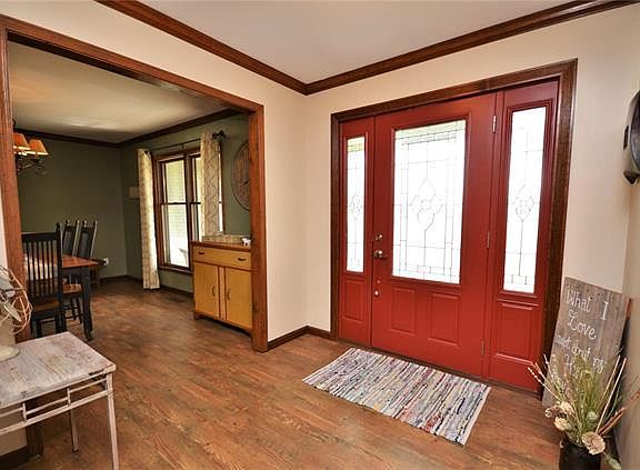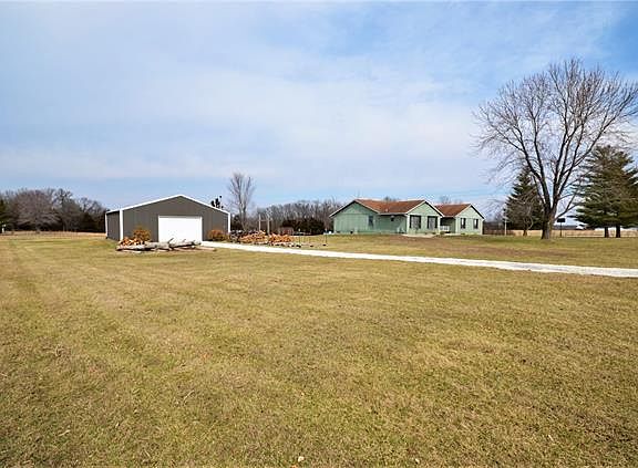 Country living only 4 minutes from town! Large ranch on 3 acres with 45X40 outbuilding w/water, concrete floor, lift, electric. Gorgeous wide plank wood in foyer, DR, kitchen and FR. Family-friendly kitchen/bkft room w/SS appliances, bay, center island, custom cabinetry, pantry and under cab lighting. Family room with vault, & separate dining room with crown. 3 seasons room is home to a wood burning furnace, saving $ on utilities. Huge mud/laundry room provides plenty of space and brand new flooring. Master w/walk in and bath w/double vanity. Basement provides two finished rooms for hobby, office or extra sleeping space. The backyard provides an above ground pool and deck, covered patio. New garage door on oversized side entry attached garage, new HWH, 1 year old pump on well, and exterior drain system for peace of mind. This beautiful home is move-in ready, neutral and has lots of space, & the property/outbuilding provides endless opportunity for hobbyists, car enthusiasts & more!