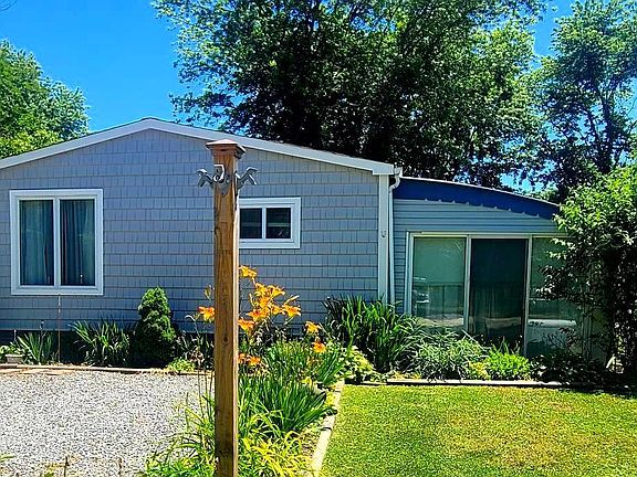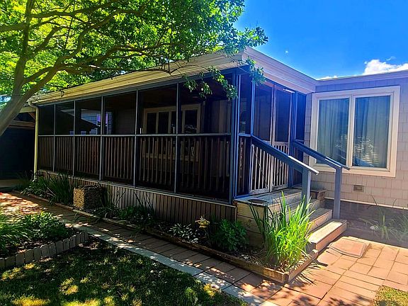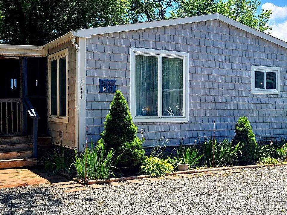 This home is just minutes away from the resort beaches, shopping, restaurants, water parks and theaters. The lot rent includes lawn care, snow removal trash and has a community pool. This 3 bedroom 2 bath home is spacious and has been totally remodeled inside and out and shows like new (seller is an employee of Schell Br Builders). The home is wrapped in gardens and the backyard backs up to the vineyard and open beautiful fields. There is a large front screened in porch and 2 decks. Step out of the Master bedroom onto your deck overlooking gardens and scenic fields. From the front porch , step into a warm and welcome foyer with coat closet. The walls are drywall and the gorgeous engineered hardwood floors are new throughout with new carpeting in all 3 bedrooms. The kitchen has a morning room to one side and a large dining room for entertaining family and friends. The kitchen has been updated and has newer GE and Frigidaire appliances. There is a front load large capacity washer and dryer for all those beach towels. The hall bath has been remodeled and has a Jacuzzi soaking tub and beautiful tiled flooring. The master bath has a gorgeous tiled shower with custom cabinetry and a blue tooth vent light that changes color and plays your favorite tunes. The Sunroom is filled with natural light, has custom cabinets, tile flooring and is wrapped in gardens. The shed is large with a concrete floor, workshop cabinets , and electric There is a grill area that has a vented roof . There are 4 parking spaces for those guests that want to visit your beach house. Come take the tour before this one is gone. Life is short, buy the house at the beach!