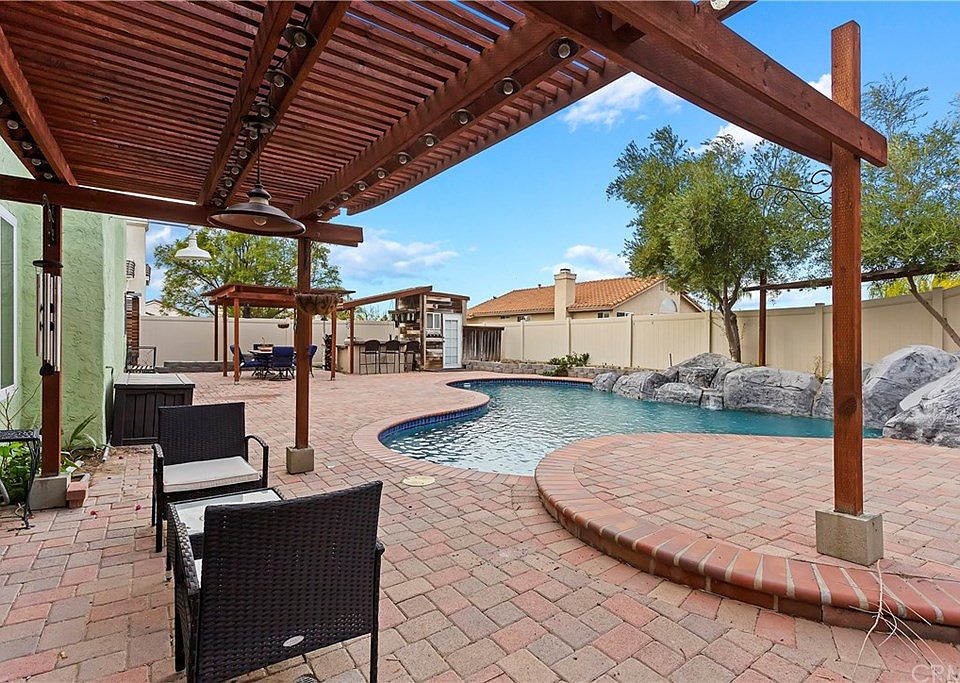 Beautiful pool home in a prime location of Temecula! This 4 bedroom, 3.5 bathroom spacious home is not to be missed! From the entryway, there is an open living space with high ceilings, intricate light fixtures, and view of the modern staircase. The beautiful kitchen features custom subway tile backsplash, walk-in pantry, stainless steel appliances, custom light fixtures, farmhouse sink, wine cooler, and recessed lighting. The kitchen opens to the family room which enjoys a gas fireplace, shiplap walls, brick accent wall, and views of the pool. There is a private casita downstairs with its own bathroom, kitchenette, and bonus family room with access to the backyard! Upstairs, each of the generously-sized bedrooms features a spacious closet and ceiling fan. The two upstairs bedrooms are connected by a Jack-&-Jill bathroom with lots of storage space and dual sinks. The very large master suite has its own gas fireplace, shiplap accent wall, his & hers sinks, soaking tub, and walk-in closet. The backyard is the perfect entertaining space! There is a large pool with a slide and a fountain feature, covered patio areas, and a built-in BBQ, bar, and kegerator. There's ample space for parking & storage in the 3-car garage with RV/Boat parking off to the side of the driveway. The wineries, Old Town Temecula, golf courses, restaurants, and the Promenade Mall are all very closeby! This property is in a great school district, no HOA, no Mello-Roos! Come see it today!