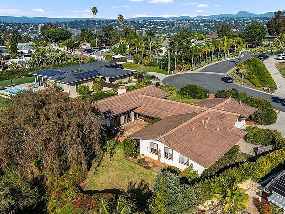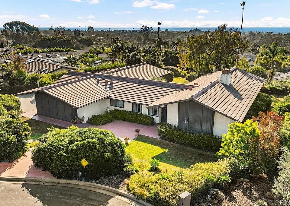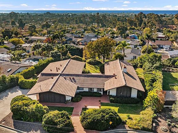 The one you've been waiting for - a single level gem in West Carlsbad with a huge lot and ocean views! This special home, located in the popular "Pill Hill" community near Carlsbad Village, has been lovingly cared for by its original owner and is awaiting your custom touches. You will love the vaulted ceilings throughout the main areas, with beamed ceilings in several of the rooms. The flexible floor plan features a spacious primary suite with soaring ceilings and fireplace, 5 other full bedrooms, another full bathroom, and a half bath. The large formal living room, formal dining room, and family room are great for any gathering. Step into the yard through the center courtyard from the main hallway or living room where you will find plenty of room for a pool, an ADU, or both - plus enjoy stunning westerly views. You'll love the oversized garage, dual-zoned HVAC units, and other unique touches. You are just minutes from award-winning schools, tons of shopping, restaurants, freeways, world-class beaches, and so much more. Welcome home!