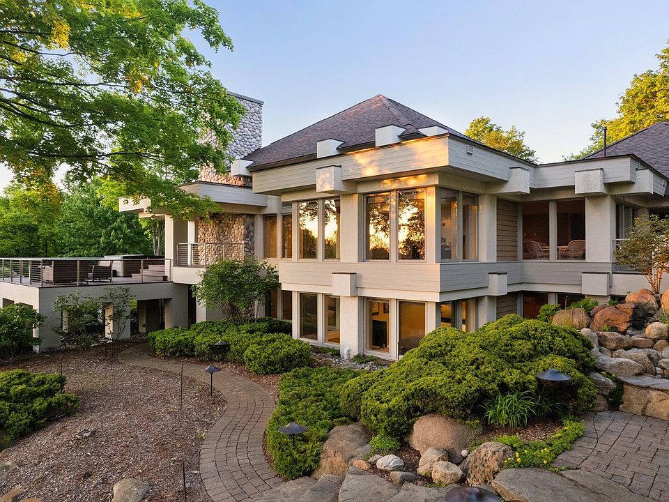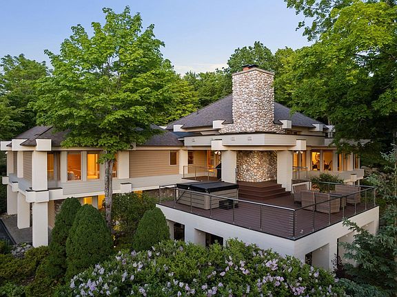 From the peak of Boyne Mountain, welcome to Northern Michigan’s premier Mountain Club Residential Community! This exquisite home overlooks rolling hills down to Deer Lake and the manicured greens of the Monument Golf Course directly across the street. Upon entering the home, one notices a sizable great room hosting two seating areas, fireplace, beverage station with refrigerator, and the formal dining room situated to enjoy the beauty of the professionally designed landscaping with infinity hot tub. Designed by architect Douglas Wright, this home showcases the balance, use of lines, mindfulness of natural light and shadows, and visual harmony he is known for. The spacious kitchen offers two ovens, two dishwashers, and outlets for appliances built within the clever counter storage. The primary and secondary en suites are located on the main floor, both with walk-in closets. On the lower level you are greeted with a seating area, fire place, beverage station with refrigerator, three bedrooms, and two bathrooms. Don’t miss the outstanding game room that is sure to offer hours of entertainment! There are several spaces outdoors such as a patio for grilling, a deck to enjoy a meal, or you can soak in the second hot tub of the house. Two attached heated garages, both with two doors, include ample space for vehicles, skis, bikes, boat, or clubs for future adventures. Boyne Mountain is home to SkyBridge Michigan, the world’s longest timber-towered suspension bridge, The Alpine and The Monument Golf Courses, Avalanche Bay Indoor Waterpark, and Zipline Adventure Tour. Additional recreation at Boyne Mountain includes skiing, ice skating, horseback riding, tubing, swimming, playing Pickleball, disc golf, mountain biking, and more.