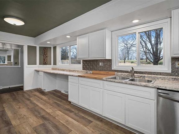 Serenity will surround you at every turn! Wake up to the soft sound of birds chirping, water bubbling in the pond, and the rustle of trees. This home sits on 2.47 ac of tree lined beauty. This adorable multi level home has lovely refinished hardwood floors, Luxury Vinyl Plank, and tile throughout. Watch the wildlife through one of the many windows flooding the renovated custom kitchen with sunlight. You will fall in love with the open flow of this home and the interest created by all the living space each level of the home offers. Don't forget the sunroom that could also double as a greenspace. If you want to be connected with the indoors and outdoors, then this home is for you!