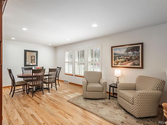 Nestled within the esteemed Holly Ridge neighborhood, this meticulously maintained home is on a picturesque corner lot, offering privacy. Step inside and be greeted by the beautiful hardwood floors that flow through the kitchen, living room, & dining area, complemented by elegant plantation shutters & recessed lighting. Indulge in the ultimate culinary experience in smart layout kitchen designed for both style & functionality, boasting abundant storage space, cherry cabinetry, granite countertops & backsplash which perfectly harmonize with the stainless-steel appliances. Enjoy the dual fuel stove offering the best of both worlds with a gas cooktop and electric convection oven. Upstairs, four spacious bedrooms, with plush new carpet, freshly painted walls, ideal for accommodating a growing family or providing ample space for guests. The large primary suite features his & her separate closets along with a luxurious primary bath with jetted tub for ultimate relaxation. Descend to the lower level where a cozy wood burning fireplace awaits, surrounded by wood beams, engineered hardwood flooring, with exterior access to covered patio for entertaining. The home office or 5th bedroom offers plenty of natural light & versatility. The finished basement offers a recreation/media room with lots of extra storage. Updated home exterior includes new exterior doors, resurfaced & painted stucco, & the recently replaced driveway & walkway add to the impeccable home’s curb appeal. Bask in the beauty of spring from the recently replaced large patio while enjoying enchanting crab apple trees & garden area. The playset with a tower promises endless fun for children or guests alike. The front yard showcases peach colored roses, a flowering plum tree in the spring. Conveniently located, offers unparalleled access to nearby restaurants, shopping destinations & the scenic Highline Canal & Bible Park. Easy access to DTC, I-25 & downtown. All conveniences are at your fingertips.