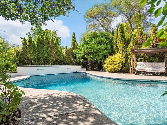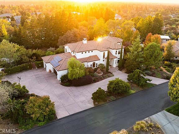 Welcome to a truly remarkable estate within the highly sought-after gated community of Canyon Oaks. Nestled on a private cul-de-sac on a sprawling one-acre lot near the entry gate, this Spanish-inspired residence showcases breathtaking landscaping and elegant design elements throughout. Step through the grand entryway into a home that exudes sophistication, with arched walkways and expansive windows that flood each room with natural light and offer beautiful views of the meticulously crafted grounds. The living room is an entertainer's dream, boasting soaring high ceilings, a cozy fireplace, and seamless flow into a gourmet kitchen. Here, you'll find luxurious granite countertops, double ovens, stainless steel appliances, an island and peninsula, plus a charming dining nook. Additional features on the main level include a climate-controlled wine storage room, two guest bedrooms, two guest bathrooms (one with a relaxing sauna shower), a formal dining room, and a cozy library with its own fireplace. Ascend the stunning wrought iron staircase to a second-floor terrace that overlooks the main living area. The upstairs media room provides a versatile space for entertainment or relaxation. The primary suite is an expansive retreat, featuring a fireplace, skylights, a private reading area, a balcony with scenic views, and a massive walk-in closet. The luxurious ensuite bathroom offers a soaking tub, walk-in shower, double sinks, and a vanity area. Upstairs, you’ll also find two additional guest bedrooms and a full guest bathroom. The backyard is an absolute oasis with a lush lawn, a stunning pool, a serene koi pond with a flowing stream, a hot tub and outdoor shower, and a garden area surrounded by mature fruit trees. This dream yard is perfect for both relaxation and recreation. Other premium amenities include an on-demand water heater, an EV charger, 50 owned solar panels with backup batteries, three HVAC units, a whole-house vacuum system, extensive storage space with both basement and attic areas, and an oversized three-car garage. This home truly has it all – an unparalleled blend of luxury, privacy, and functionality.