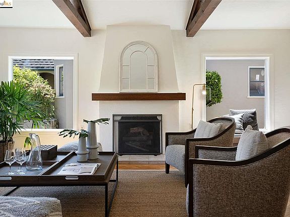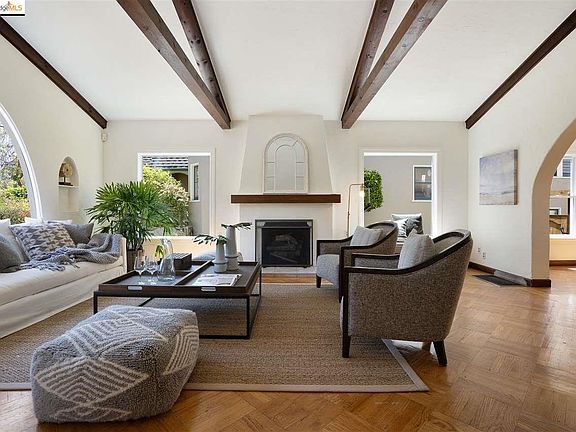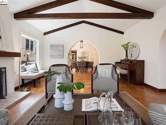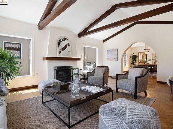 This spacious Spanish style property is situated in a delightful enclave of architectural homes built in the 20's & 30's. A red tile roof and colorful drought tolerant garden beautifully frame the welcoming entry. Richly stained hardwood floors, vaulted wood beamed ceiling, distinctive archways, stucco encased fireplace, wrought iron handrails and period light fixtures exemplify the property's design lineage. The versatile split floor plan affords a myriad of space planning options. The main living level is comprised of an expansive living room, light-filled dining room, updated eat-in kitchen with stainless steel appliances and plantation shutters and bedroom with adjacent half bath. The upper level consists of a full bath & three additional bedrooms. All generously proportioned, the master bedroom is adjoined by an enchanting balcony from which to enjoy the outdoors. A lower level plus room ideal for home office leads to a rear private deck surrounded in lush foliage!