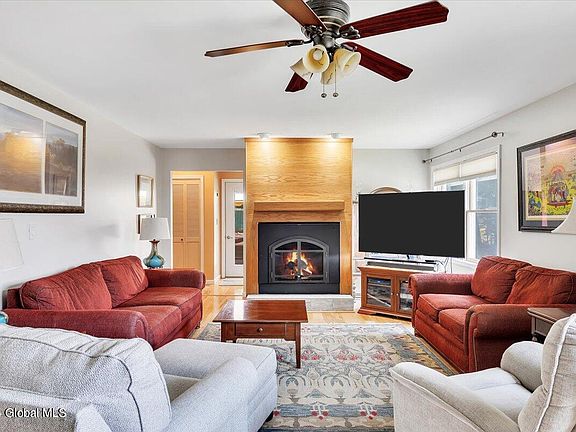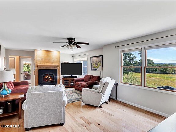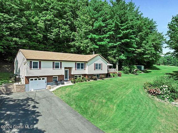 Executive Raised Ranch meticulously maintained and updated with 2.5 baths and flexible space for use as 4-5 bedrooms, family room, office or crafting spaces. The Primary suite offers a walk-in closet and nicely updated ensuite. Hickory Floors throughout. Updated Kitchen and Baths. 1st floor laundry. Finished basement has a half bath. Two propane fireplaces provide extra heating and ambiance. Energy-efficient heat pump and cooling system. Beautiful Deck and lush north-facing side yard. Garage, accompanying workshop and tons of storage! 2.62 Acres in total.