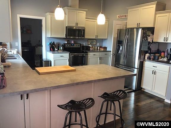 View of Mary's Peak. Close in acreage with warm up arena, 3 stall barn including loft and heated tack room and storage area. Home is one story with ADA compliant bedroom and bath. Large 20 X 30 deck. Electric gate at road for safety. Wonderful custom play fort for kids. Well has a 1500 gal concrete tank with one year old pressure tank. Frost free faucets,30 amp plug in barn and pump house. Orchard has apples and plumbs. Chickens can stay if you want them along with 2 barn cats.