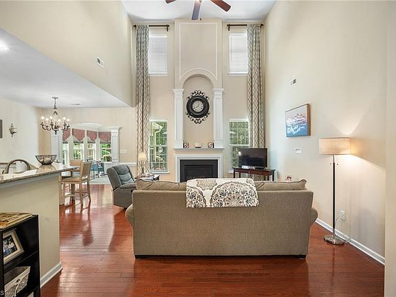 Stunning, like new 3 bedroom, 2.5 bath home in Glenmore Creek featuring gleaming hardwood floors throughout the main level. Arched doorways lead to beautiful living spaces. Formal dining with wainscoting for all of your holiday get togethers. Enjoy an open concept as kitchen with SS appliances and ample granite counter space flows into breakfast area and living room with cathedral ceilings and gas fireplace. Enjoy your morning coffee during all seasons of the year in the natural light filled sunroom. Main level primary suite with tray ceiling, garden tub, dual vanity, stand alone shower, and WIC. Upstairs find two spare rooms, spare bath, and large loft perfect for office space or any flex desire. The real winner here is the outdoor living area! Step outside and enjoy your relaxing oasis under the canopy of mature vegetation with gazebo, water fountain feature and outdoor storage building to convey.