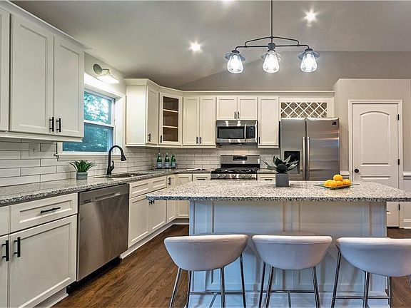 - Kitchen Features: Breakfast Bar, Eat-in Kitchen, Pantry, View to Family Room, Stone Counters, Cabinets White