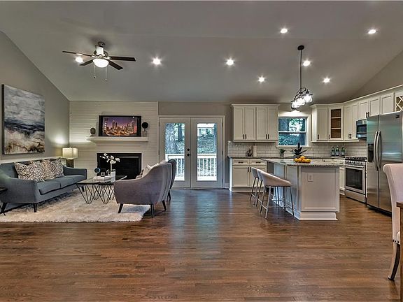 Beautifully renovated split in Gresham Park is move in ready! Open concept living w/ living room & cozy fireplace. Kitchen features white 42" Shaker cabinets with soft close, SS Samsung Appliance package, GAS range, granite. Island has seating for guests. Dining area seats 12. Pantry! Hall bath features custom tile tub/shower. Master bath features barn door, custom tiled shower, frameless glass door. Hardwoods throughout main. Downstairs partially finished w/ laundry. Entry through garage or exterior stairs. New roof, windows, HVAC, water heater, paint, fixtures, etc.!