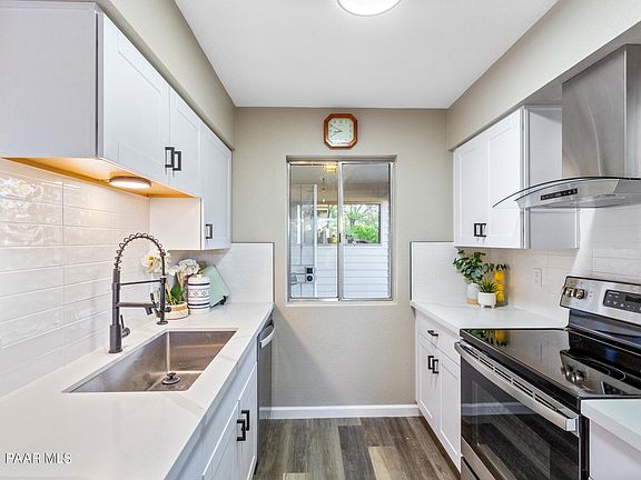 Rent this end-unit condo in a quiet community that is close to medical facilities, hiking trails, shopping, restaurants, and downtown Prescott recently renovated with new paint, new kitchen and appliances, and laminate floors. This end unit provides extra natural light with a spot for your outdoor grill. HOA has recently put on a new roof and painted the exterior. The water heater and HVAC were replaced in the last 3 months. The updated condo includes an open kitchen concept with a breakfast bar, pantry, dishwasher, electric top stove and oven, new washer and dryer, new central AC/heat, outdoor balcony, and microwave. Large living room with gas fireplace. Has a dining area with a sliding glass door out to a private balcony. Has one assigned parking spot right in front of the unit. The water, sewer, and trash and natural gas are included in the rent. Has fantastic views and a convenient location close to Embry-Riddle Aeronautical University and Willow Lake. Owner pays sewer, water, trash and natural gas. Tenant pays electricity and internet. No smoking allowed. Small pets considered. Prefer long term lease.